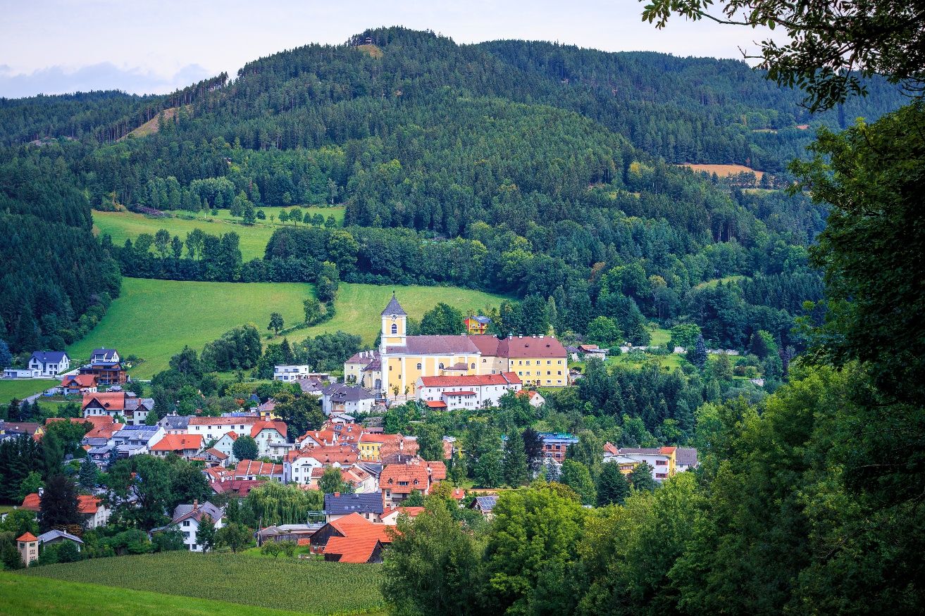 This route offers a leisurely hike through a panoramic cultural landscape and thus truly lives up to being a paradise of views. After a short ascent from Kirchberg /Wechsel in the valley, it continues leisurely over a ridge - past the heaviest Fleckvieh breeding bull at Ramswirt - until you finally catch a glimpse of the construction site of the Semmering Base Tunnel and arrive at the picturesque pilgrimage village Maria Schutz. The rural cultural landscape continuously offers atmospheric views both far and near on both sides of the ridge, and conveys pure rural idyll.