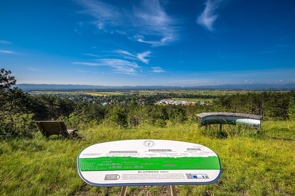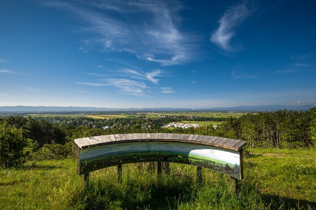 Along the forerunners of the Hohe Wand, where caves lie hidden and the forests gently bend in the wind, we walk out of the Piesting valley towards the great plain of Vienna. Our view sweeps over the Vienna Basin, brushes the Bucklige Welt, and shows us that every Alpine Arc has an end. Relaxed, we settle down after the hike and enjoy the crystal-clear water in the crystal thermal bath or let the Fischau Castle have an effect on us. The last viewpoints of the Vienna Alpine Arc are the Red Cross viewpoint and the Blumberg viewpoint. From here, the route continues further to the center of Wiener Neustadt. Along this short section, we often have the opportunity to look back and mentally review the journey once again.