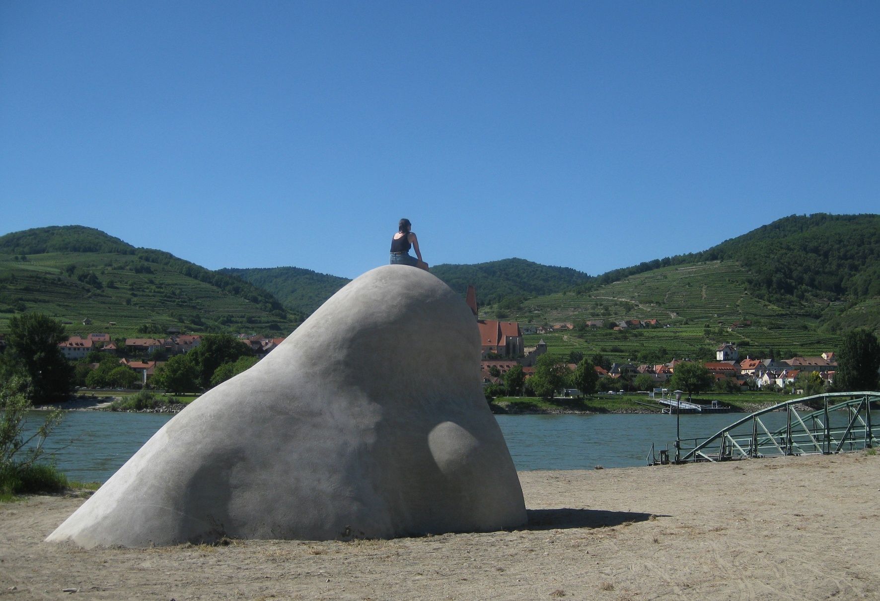 The roller ferry connects Weißenkirchen with St. Lorenz. From the landing stage, the path leads past the modern sculpture "Wachauer Nase" by Gelitin and the Roman Burgus in the direction of the Steinige Ries nature reserve. There you reach the Welterbesteig Wachau - Wachau World Heritage Trail, which turns left towards Rossatz and right towards Hofarnsdorf.