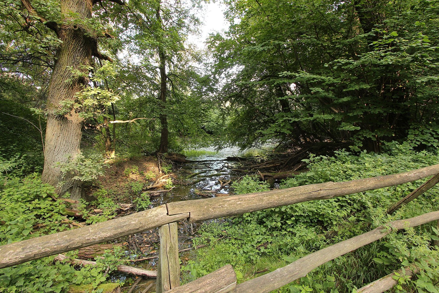 The first section of the trail after the national park gate follows a forest road on the left. The adjacent forest is a hardwood forest, with the North American black walnut still bearing witness to the former forestry management. At a fork in the path, take the right-hand path that leads along meadows back towards the forest. Along the following section of the path, you will see two small wooden bridges for crossing the ditches, which are filled by leaking groundwater during floods. After a few hundred meters, you reach the flood protection dam, cross it and enter the floodplain, which is flooded during high water. The path leads through a fairly young stand of oak trees and along a side arm (Kleine Binn) where, with a bit of luck, pond turtles can be observed. Beavers live in their burrows on both sides, create steep slides into the water and leave their traces on the bank vegetation. The kingfisher then finds good perches on fallen trees. You then pass the southern edge of the animal meadow, where comfrey and other medicinal plants bloom in early summer, and follow the wide forest road to the Fadenbach stream. Along the oxbow lake inland, you reach the dam again, cross it and take the subsequent path back to the national park entrance.