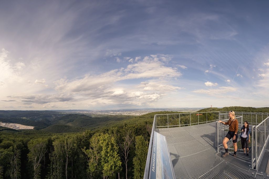Together with the Eschenkogel (653 m), the Vierjochkogel (651 m) and the Buchkogel (639 m), the Anninger (675 m) - approx. 20 km south of Vienna - forms a massive limestone mountain range. The low mountain range on the eastern edge of the Vienna Alps - at the break-off to the Vienna Alps basin - can also be described as the heart of the Vienna Woods Biosphere Reserve, where nature and culture are in harmony with each other. The Anninger is almost entirely covered by extensive forests. At altitudes between300 m and 500 m, there are broad-leaved oak-hornbeam forests, with woodruff-beech forests dominated by copper beech above. In addition, the black pine (umbrella pine, Viennese Parapluibaum) is often found, such as over large areas in the Föhrenberge Nature Park, the southern part of which extends into the area of the Anninger. The municipalities of Hinterbrühl, Mödling, Gumpoldskirchen, Pfaffstätten, Baden and Gaaden, as well as Guntramsdorf and Traiskirchen lie at the foot of the Anninger. From each of these starting points, the mountain can be "climbed" along signposted paths with all its major and minor attractions, such as the Wilhelmswarte, the Jubiläumswarte, the Klesheimwarte or the Husarentempel. Hikers will also find cozy restaurants such as the Anninger Schutzhaus and the Krauste Linde.