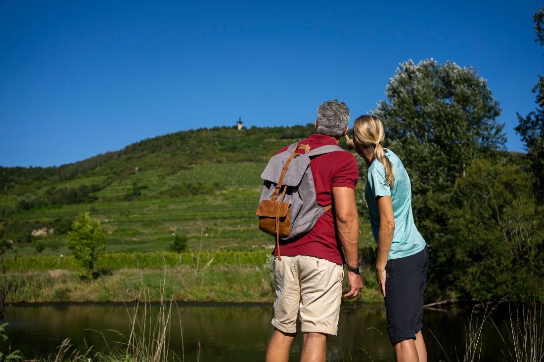 The 351-meter-high Heiligenstein, world-famous for its Rieslings, can be reached from Langenlois on a beautiful circular hike. The route passes through the Langenlois district of Haindorf and the wine village of Zöbing, along the Loisbach and Kamp rivers as well as through forests, vineyards, and wine terraces. The historic Kamptalwarte offers a magnificent view over Zöbing, Langenlois, and the lower Kamptal down to the Danube valley. On clear days, the peaks of Schneeberg and Ötscher are clearly visible on the horizon.