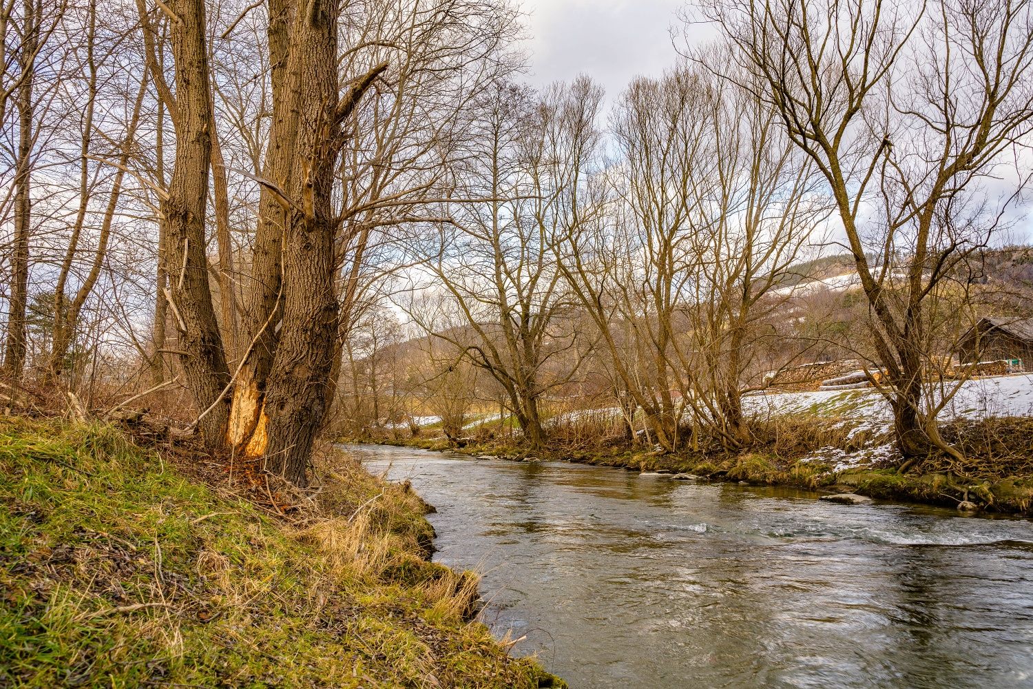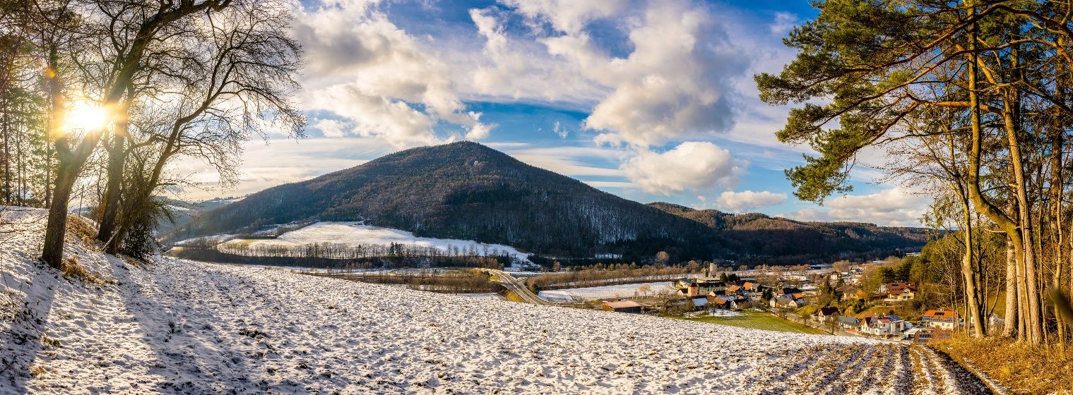 A leisurely circular walk along the waterway in Grimmenstein with a view of the wintry Kulmriegel.