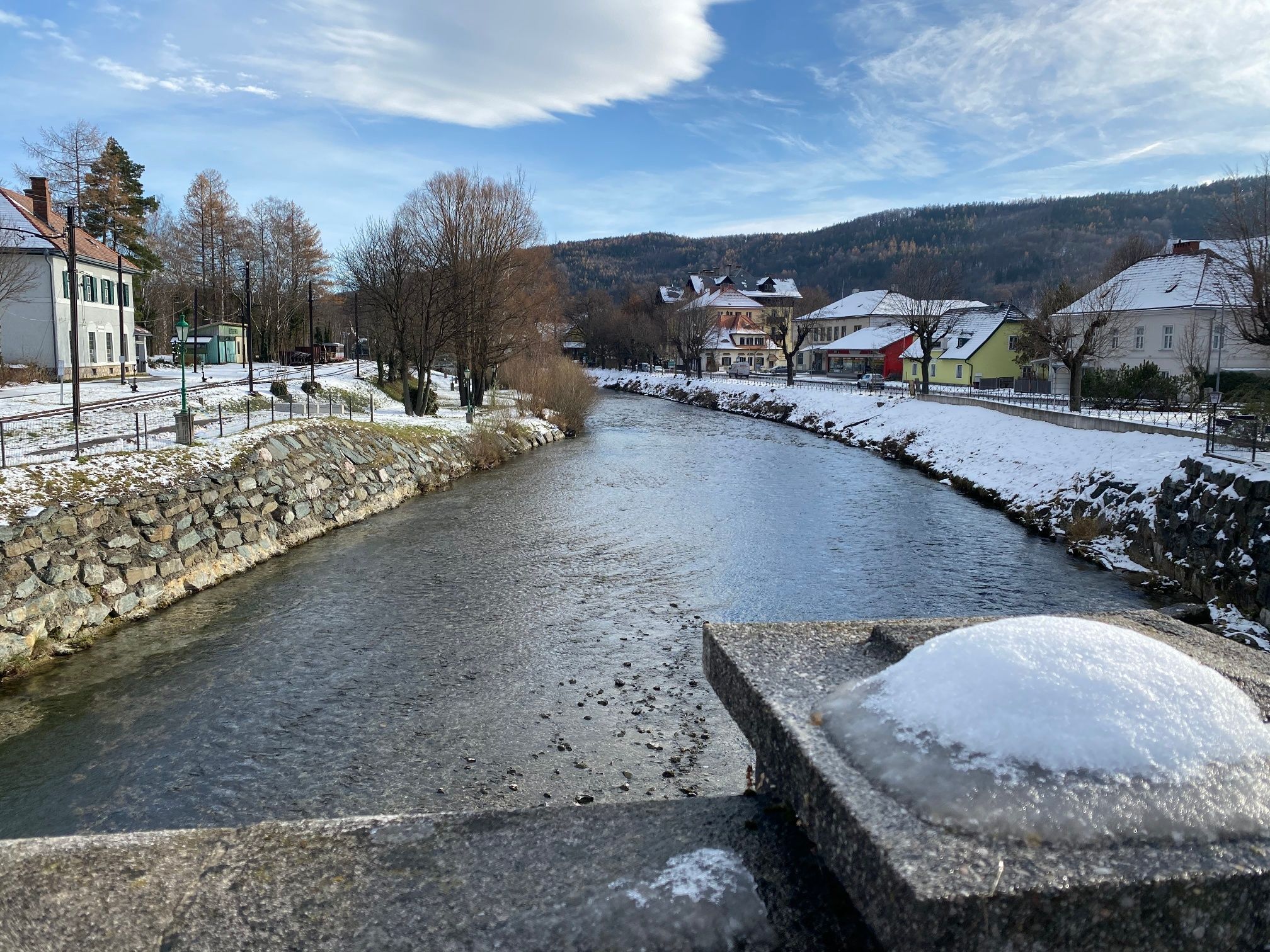 - Route description You start at the Reichenau municipal office at the Rax and walk along Schulgasse, then turn left into Badgasse. The next alley turns right into Johann-Reifböck-Gasse, passing the first heated outdoor pool of the monarchy before turning left onto Hans Wallner Street. Now take a right into Alleegasse and stroll among majestic trees. Then continue left along Eichengasse to the cross. There you enter a forest path (signpost: Speckbacherhütte via langen Rain). Note that it can be icy in places here. Through the trees and bushes, you can catch views of Rothschild Castle and numerous villas. At the end of the path, turn right onto Wartholzstraße, passing Schloss Wartholz. At the roundabout, turn right back into Schulgasse, past the war memorial before turning left along Hans Wallner Street towards Reichenau Castle. Cross the main road and the Schwarza River, pass Café Nöbauer, the castle, and the parish church, and continue along Thalhofstraße. The route passes Rudolfsvilla up to the view of the impressive Thalhof. Now you see a small path to the right that crosses Schneedörfelstraße and leads to the spa park. The spa park lies directly in front of the Reichenau municipal office.
