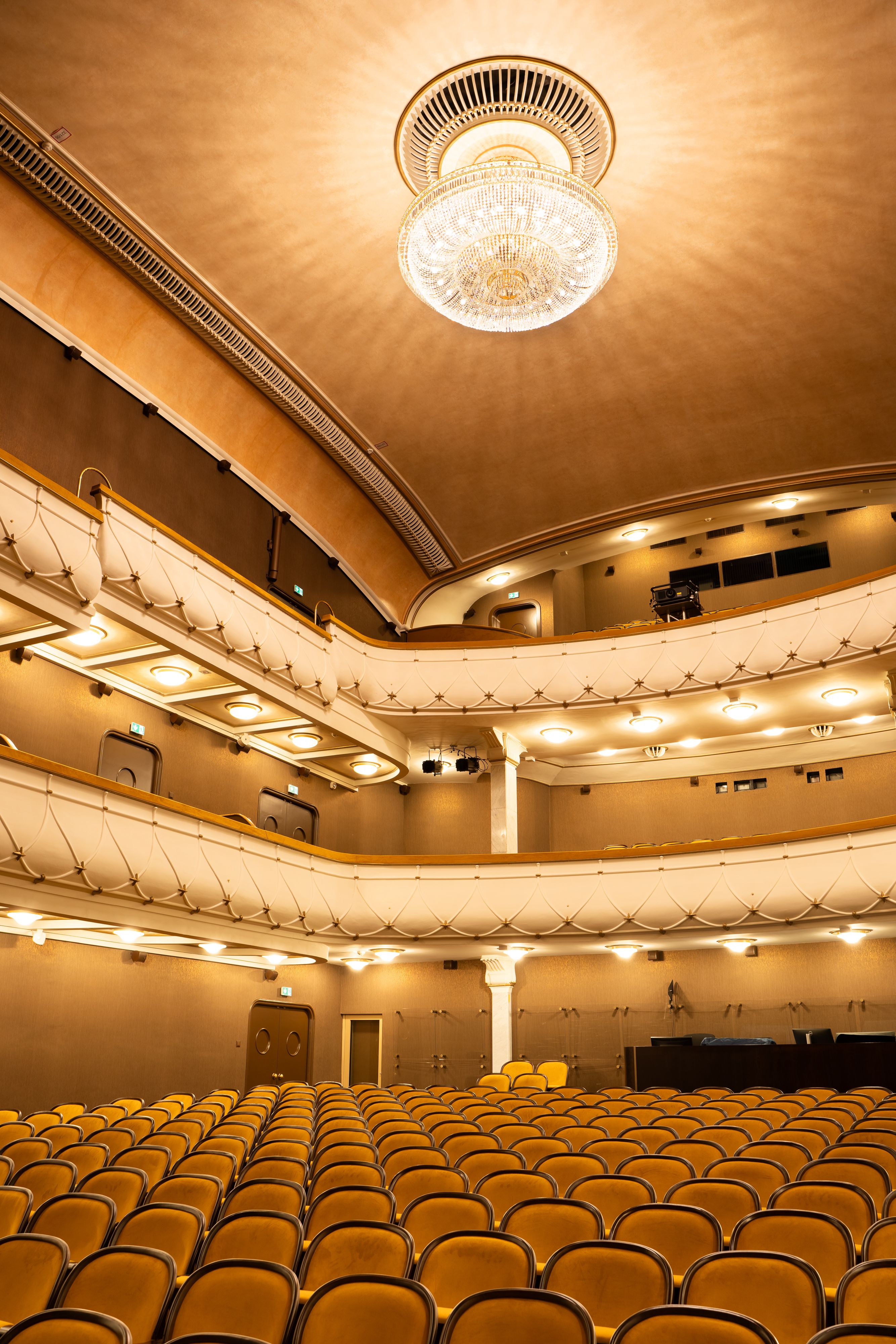 After extensive renovation, the theatre was ceremoniously reopened in 2024 and has since presented a varied programme of drama, music, guest performances and special formats. The colour scheme of the auditorium is based on the amber nuances of the coral-like motifs of Wolfgang Huts 's iron curtain - a homage to Austrian art and an atmospheric detail that artfully combines past and present.